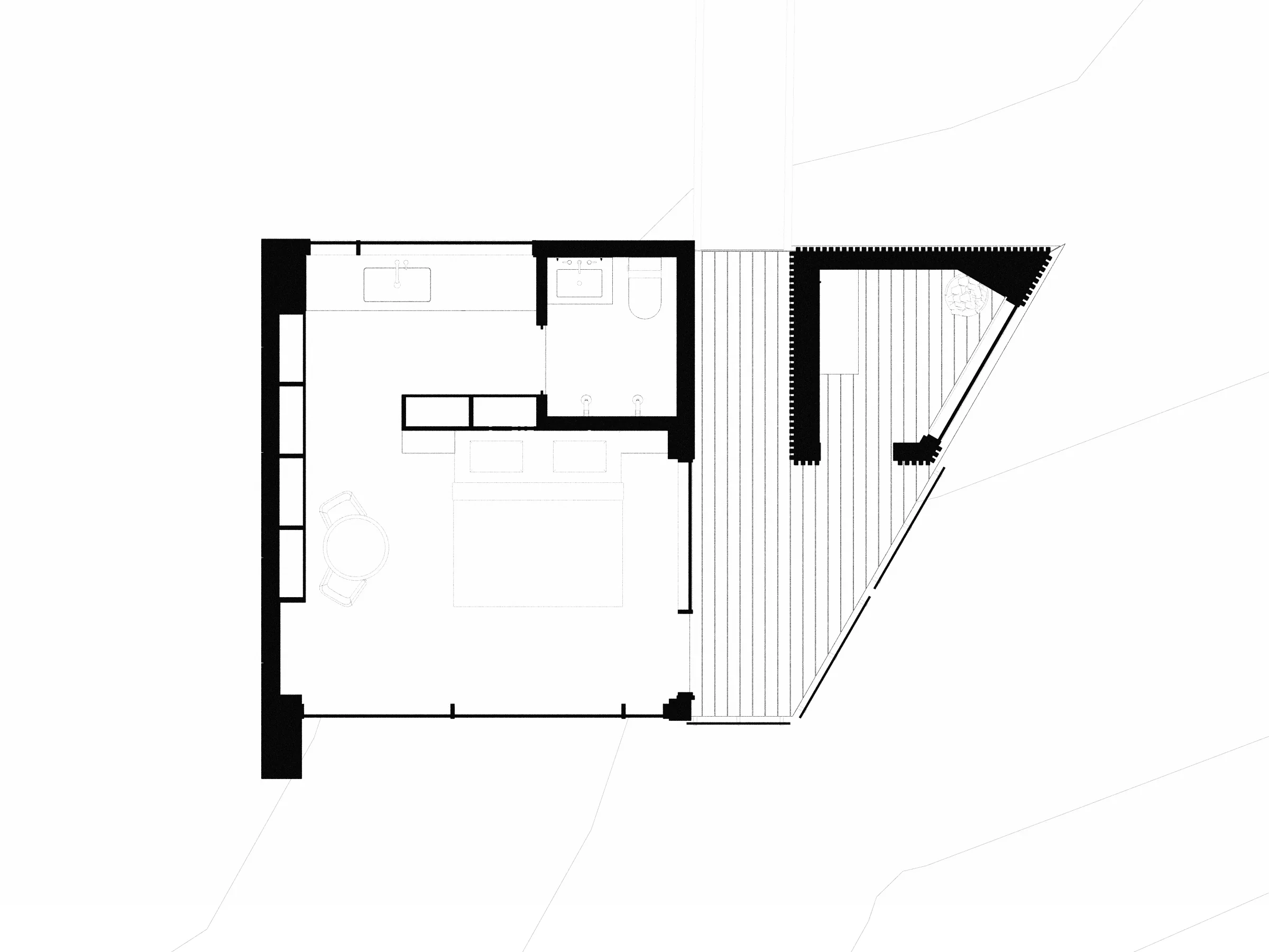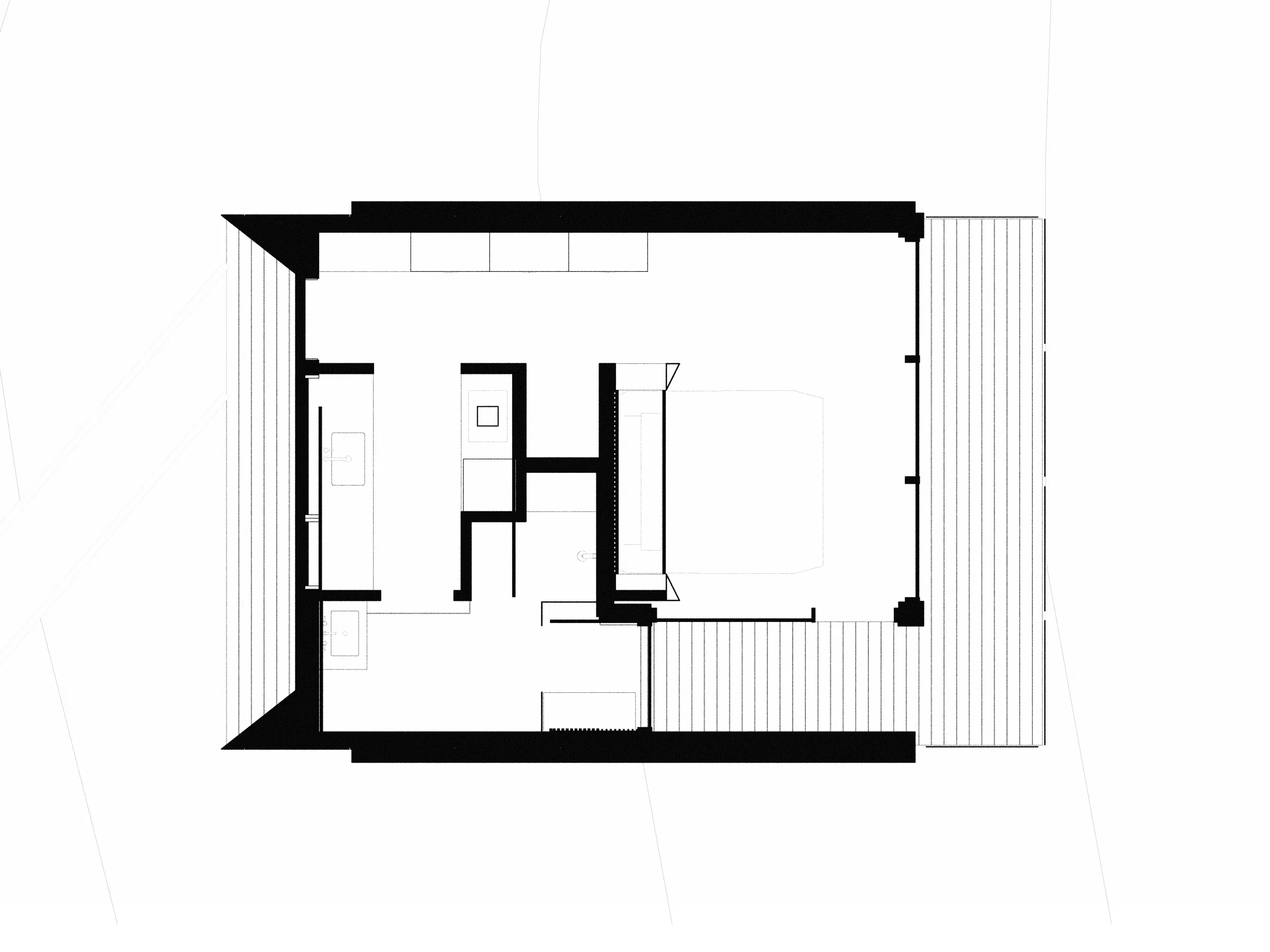 Each cabin is designed as a quiet, self-contained one-bedroom getaway. A compact plan includes an en suite bathroom and private sauna, creating a restorative experience within a modest footprint. Interiors prioritize warmth and simplicity, balancing refined detailing with a sense of ease. The cabins complement the existing Stay Boreal property—which includes two recognized rental cabins and a shared treehouse sauna—strengthening the site as a cohesive retreat. Together, the buildings create a small but memorable resort experience that feels personal rather than commercial.
